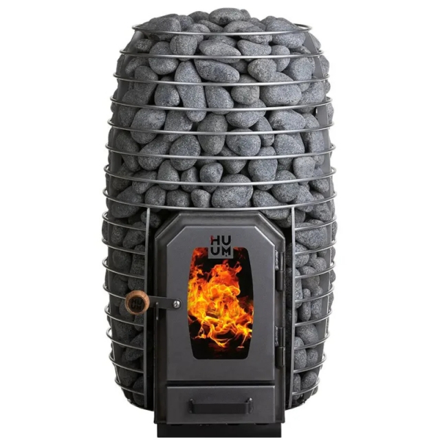 HUUM Hive Wood 13 – en moderne vedfyrt badstuovn med tradisjonelt design. Perfekt for deg som verdsetter autentisk badstuopplevelse uten elektrisk ovn. Den elegante, runde formen fremhever natursteinens skjønnhet, og stor steinkapasitet sikrer langvarig, myk damp.